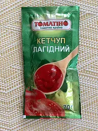 Додали до замовлення на сайті Maudau Кетчуп Томатіно Лагідний. Задоволені. Кетчуп смачний. Має достатньо густу консистенцію. В міру солоний та має приємну кислинку. Використовуємо при додаванні до мʼясних страв. Компактна та зручна упаковка. Рекомендуємо.