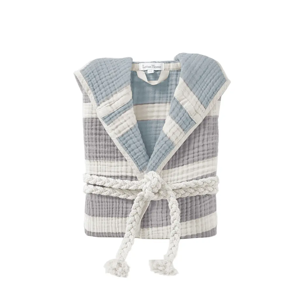 Размер: L/XL Длина рукава от плеча - 58 см Длина рукава от горловины - 77 см Длина от горлового шва до плечевого - 19 см ПО груди - 72 см Плечи - 60 см Длина изделия - 117 см Состав: 100% муслиновый хлопок Плотность: 250 г/м2 Рекомендации по уходу: - машинная стирка при 40°C - сухая деликатная химчистка - гладить при средней температуре - сушить в сушильной машине при низком температурном режиме (не выше 60°C) *Запрещено: отбеливать изделие ** Пояс подлежит исключительно ручной стирке! Бренд: Lotus Home Страна-производитель: Турция Упаковка: ПВХ
