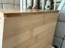 Навіть при першому огляді були виявлені деякі недоліки хлібниці, як то не рівні зазори довкола дверцят, подекуди криво оброблені кути, проте враховуючи ціну товара та непомітність недоліків здалеку, я закрив на це очі. Якщо не придивлятися, то виглядала навіть красиво. Але приблизно через два місяці хлібниця почала просто розвалюватися (див. фото). Категорично не рекомендую!