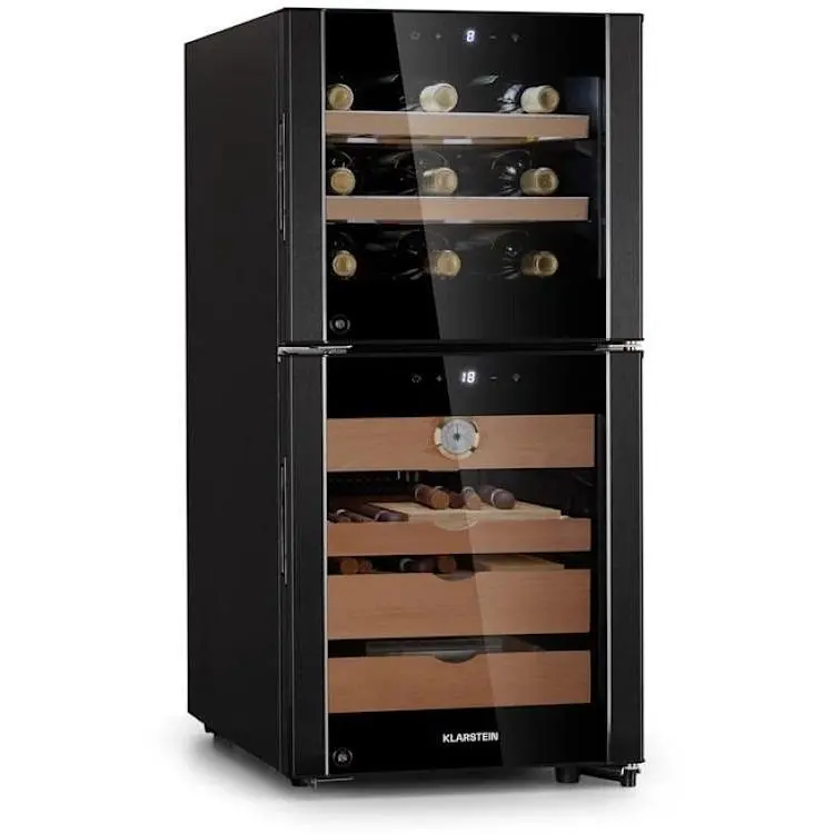 Для любителей благородного вкуса: хьюмидор и винный холодильник Klarstein El Dorado 89 обеспечивает оптимальные условия хранения сигар и вина с постоянной влажностью и температурой.