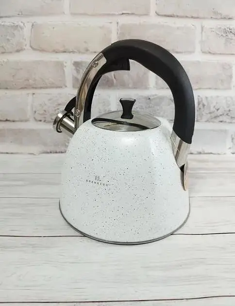 До конца акции 3 дняХороший металлический чайник со свистком нержавеющая сталь с мраморным покрытием Edenberg 3л EB-3541W Белый - для всех вид плит
