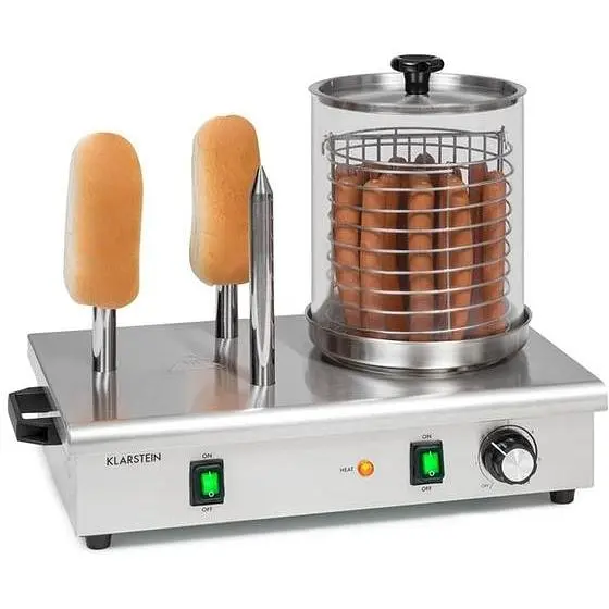 Чтобы немного почувствовать голод между ними: аппарат для приготовления хот-догов Klarstein Wurstfabrik 600 наполняет булочки и булочки с хот-догами горячими сосисками, таким образом обогащая предложение закусок в снек-барах, киосках и поздних барах.