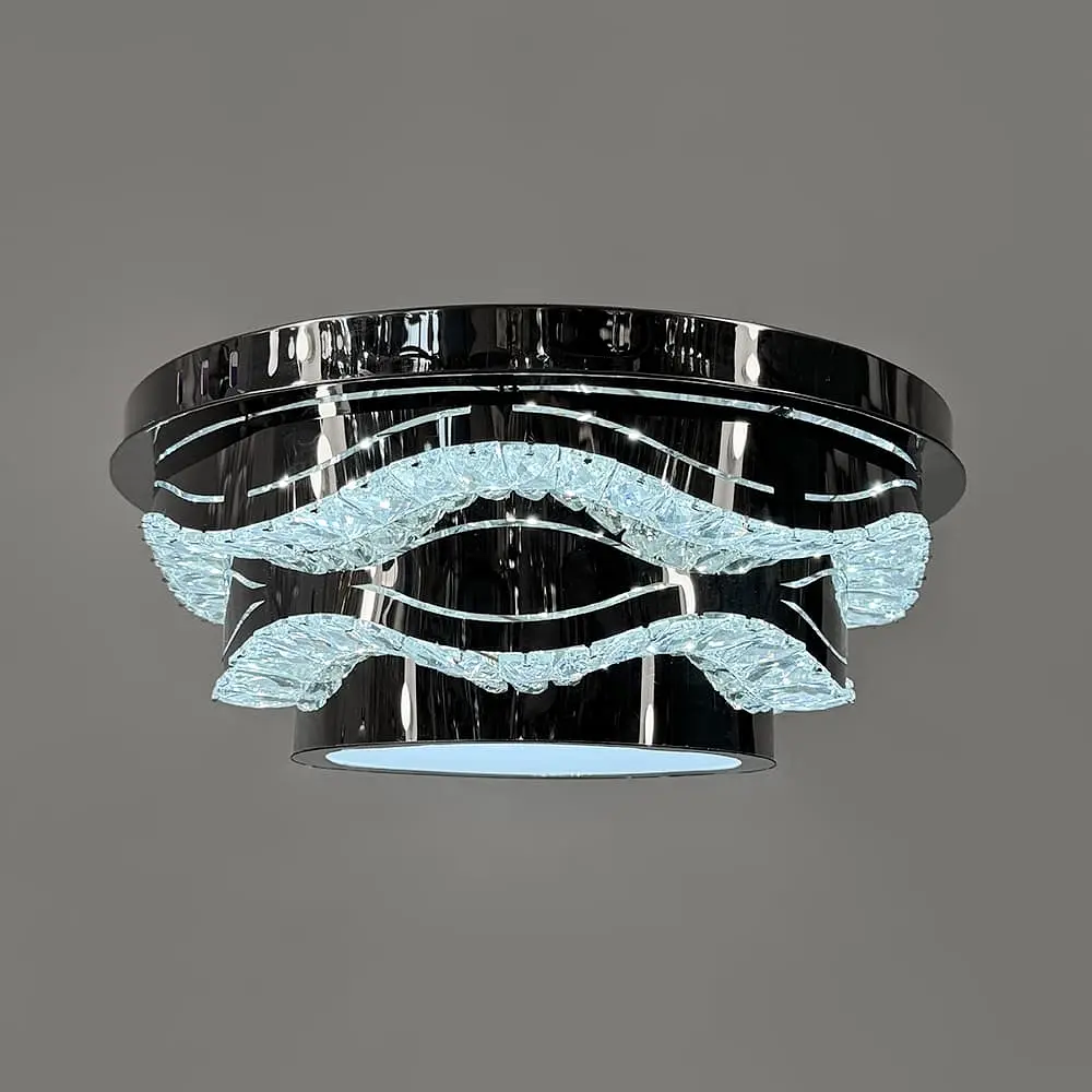 Современная серия потолочных люстр с хромированным корпусом и прозрачным хрусталем - это удачное сочетание элегантности и технологичности. Благодаря блестящей металлической основе и ограненным хрустальным элементам свет красиво преломляется, создавая глубокую игру бликов и добавляя интерьеру нотки роскоши. Все модели имеют встроенные светодиоды с тремя режимами освещения - теплым, холодным и нейтральным. Также они дополнены ночником, который дарит мягкий фоновый свет в вечернее время. Серия представлена в четырех размерах: Ø 33 см - мощность 76 Вт (38 Вт - теплый и холодный свет, 8 Вт - ночник) Ø 39 см - мощность 92 Вт (56 Вт - теплый и холодный свет, 3 Вт - ночник) Ø 50 см - мощность 110 Вт (65 Вт - теплый и холодный свет, 10 Вт - ночник) Ø 58 см - мощность 150 Вт (74 Вт - теплый и холодный свет, 14 Вт - ночник) Благодаря разным размерам, люстры можно подобрать как для небольшой спальни, так и для просторной гостиной, сохраняя стильную целостность интерьера. Количество источников света: 22 Тип помещения: Люстры для гостиной (в зал) Форма_изделия: Круг Серия: C 1784 Цвет основы: Хром Цвет фурнитуры: Хром Размер потолочной основы: 49х4 см Цветовая температура: 3000–4500–6000К Тип цоколя: LED-модуль Материал основы: Металл Размер монтажной планки: 28 см Тип крепления: Крестовина Мощность (Вт): 110 w