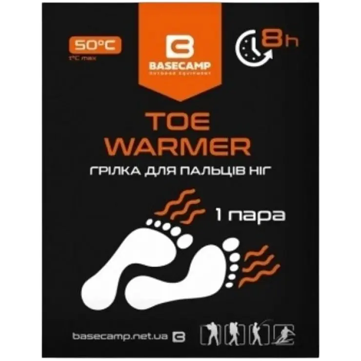Химическая грелка для ног Base Camp Toe Warmer Base Camp - это одноразовые грелки, которые обеспечат вам комфорт во время зимних прогулок, занятий спортом или активного отдыха на природе, охоты или рыбалки. После того, как будет снята обертка, они будут нагреваться при контакте с воздухом и останутся приятно теплыми в течение нескольких часов. Чтобы безопасно наслаждаться теплом, соблюдайте правила пользования.