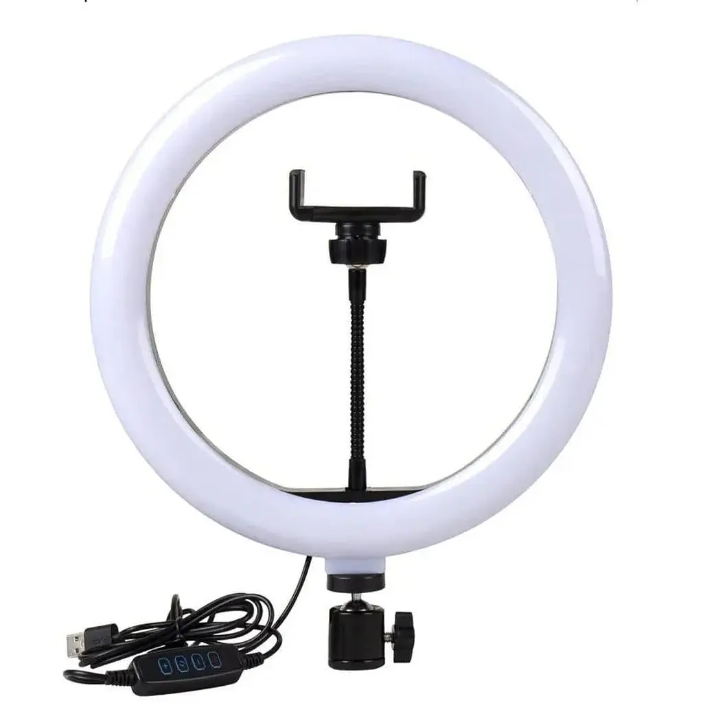 До конца акции 161 деньЭта кольцевая светодиодная лампа обеспечит Вам равномерный свет для портретной или предметной съемки, а также послужит незаменимым осветительным прибором для визажистов, блогеров и людей, занимающихся творчеством. Осветительное кольцо имеет три типа освещения (теплый, холодный и нейтральный), каждый из них можно регулировать по яркости. В комплектации есть съемный держатель для смартфона, регулируемый по ширине, что делает его универсальным и подходящим для всех диагоналей. Данное светодиодное кольцо предназначено для установки на стандартную стойку-штатив с резьбой 1/4 и имеет регулируемое шарнирное соединение, которое позволит Вам направлять свет в любом направлении 360 градусов. Диагональ кольцевой лампы составляет 26 см.