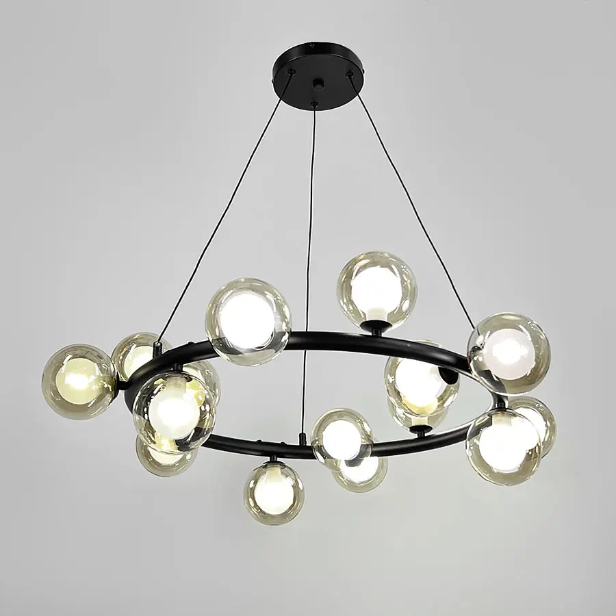 Встречайте новую модель кольцевой подвесной люстры, которая поражает своим стильным дизайном и изящными деталями. Особое очарование люстре придают оригинальные двойные плафоны: внутренний слой выполнен из матового стекла, а наружный - из теплого янтарного, создающего мягкое, уютное свечение и придает интерьеру особый шарм. Основание люстры состоит из черного металлического кольца, диаметром 54 см (общий диаметр люстры 75 см), на котором равномерно расположено 15 двойных плафонов диаметром 10 см каждый. Такое сочетание плафонов создает гармоничный визуальный ритм и привлекательную игру света. Благодаря использованию цоколей G9 люстра поддерживает современные светодиодные лампы, обеспечивающие эффективное и комфортное освещение для любой комнаты. Высота люстры регулируется в пределах от 30 до 155 см, что позволяет подстроить ее под высоту потолка и добиться идеального освещения для вашего пространства. Тип цоколя: 75 Цвет основы: Черный Цвет плафона: Янтарный Диаметр кольца: 54 см Размер потолочной основы: 14х2,5 см Максимальная высота: 155 см Минимальная высота: 30 см Размер плафона: 10 см Материал основы: Металллл Размер монтажной планки: 14 см Тип крепления: Монтажная планка Количество источников света: 15