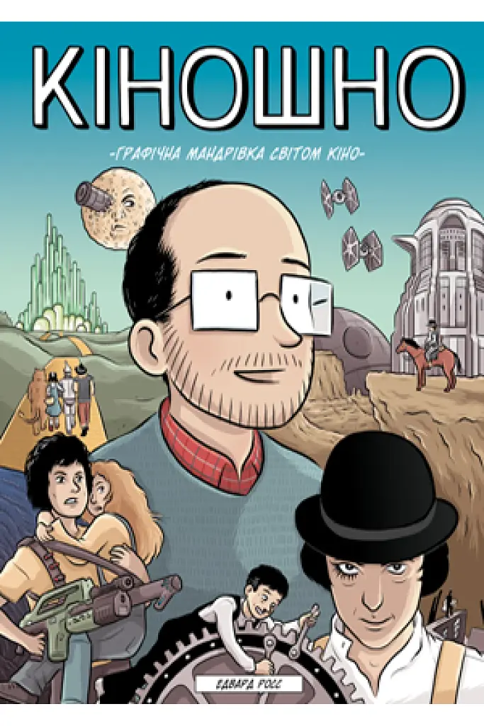 У книжці «Кіношно» художник Едвард Росс кличе нас у захопливу мандрівку історією кінематографу, використовуючи коміксову форму, щоб привідкрити завісу магії й техніки, з яких складаються наші улюблені фільми.