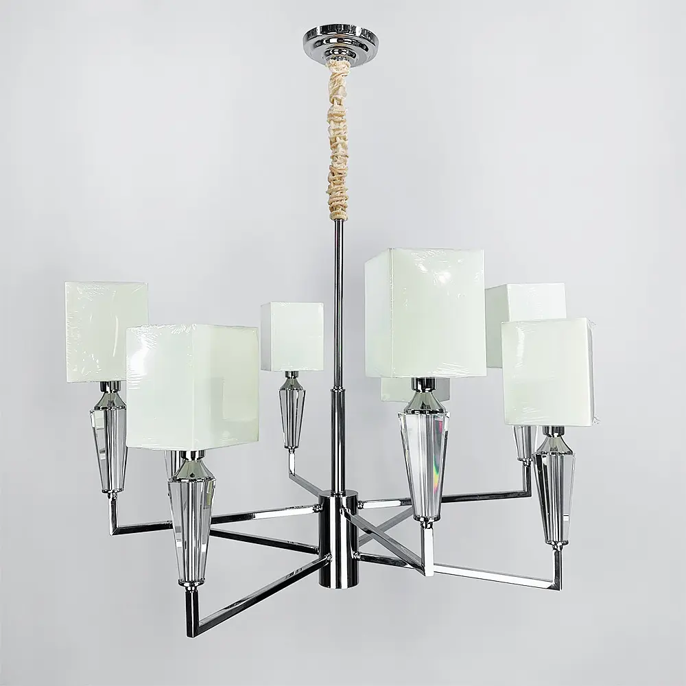 Классическая люстра на 8 абажуров выполнена в металлическом цветовом корпусе хром с хрустальными вставками. Диаметр люстры 85 см, высота регулируется от 70 до 95 см. Эта модель представлена в двух вариантах абажуров: квадратных и круглых. Тип выключателя: 85 Серия: AT 30/8 Цвет основы: Хром Цвет плафона: Кремовий Максимальная высота: 95 см Минимальная высота: 70 см Тип цоколя: E14 Размер плафона: 15х12 см Материал основы: Металллл Размер монтажной планки: 12 см Тип крепления: Монтажная планка Количество источников света: 8