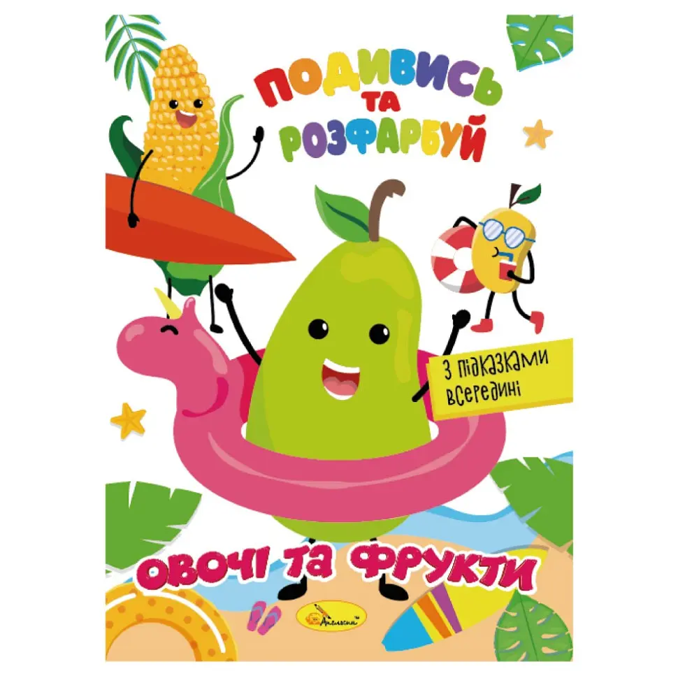 Книжка Раскраска "Посмотри и раскрась Овощи и фрукты" Апельсин РМ-44-12 с подсказками в середине - фото 1