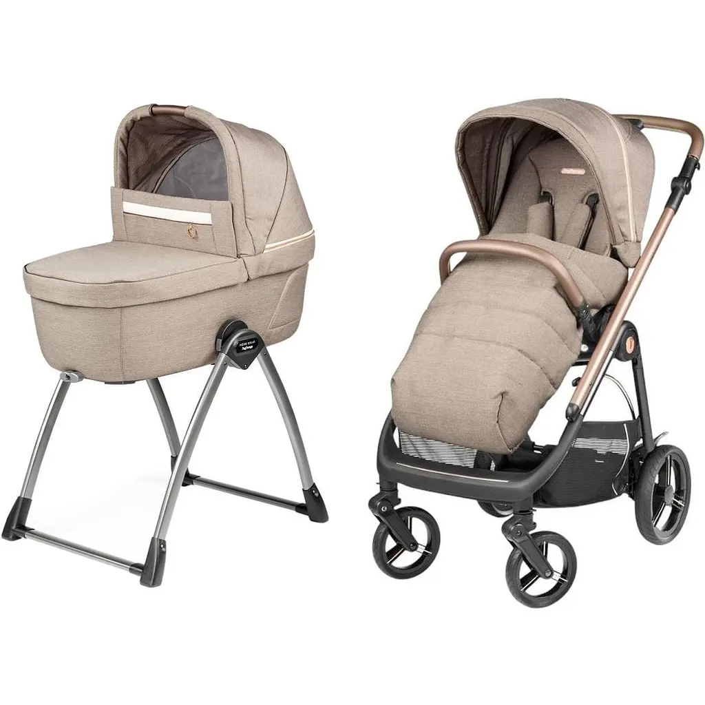 Коляска Peg-Perego Veloce Belvedere Mon Amour 2 в 1 теперь сразу в комплекте с подставкой под люльку. Придя домой с прогулки, продолжайте сладкий сон малыша. Только переставьте люльку с шасси на подставку.