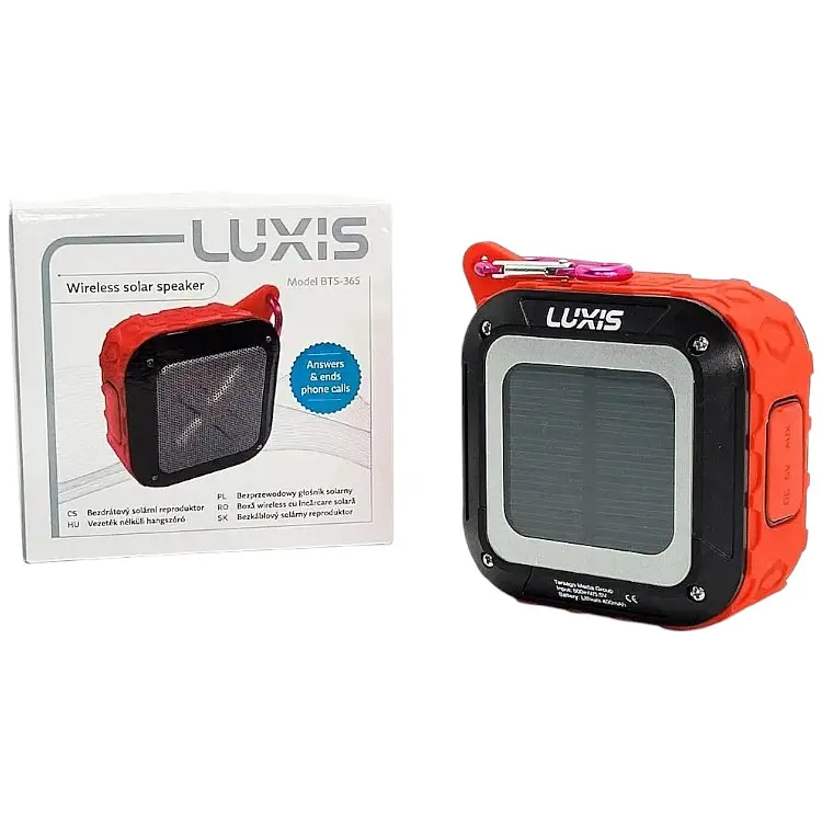 Bluetooth-динамик Luxis BTS-365 имеет небольшие размеры, что делает его удобным для выхода на улицу. Использование технологии Bluetooth в динамике обеспечивает беспроводное соединение с устройством, с которого вы воспроизводите музыку - смартфоном, планшетом или компьютером. То, что нет кабеля, дает больше места для других предметов и позволяет удобно переносить как устройство-источник, так и сам динамик.