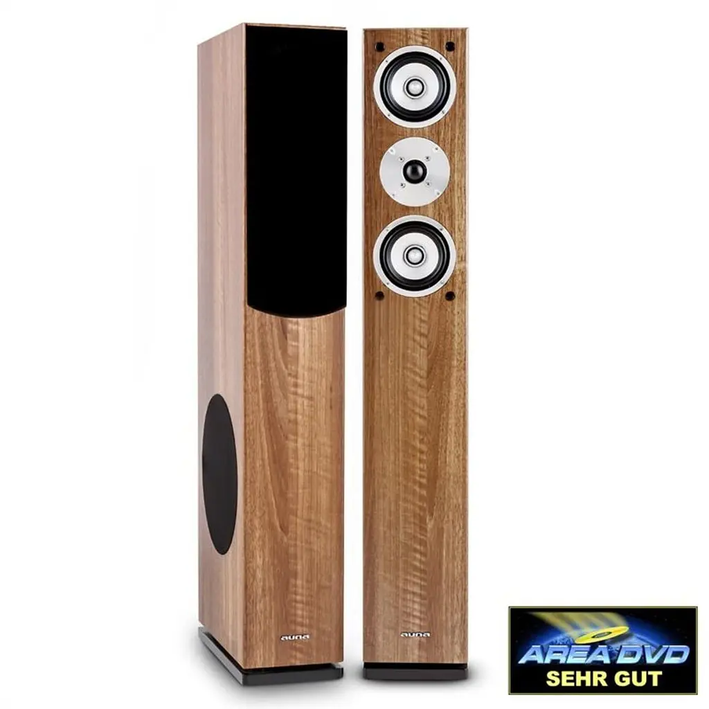 Для гармоничного взаимодействия с различной обстановкой дома напольная акустическая система auna Linie 501 FS отличается элегантным, тонким дизайном, включающим отделку под орех и съемную крышку динамика.