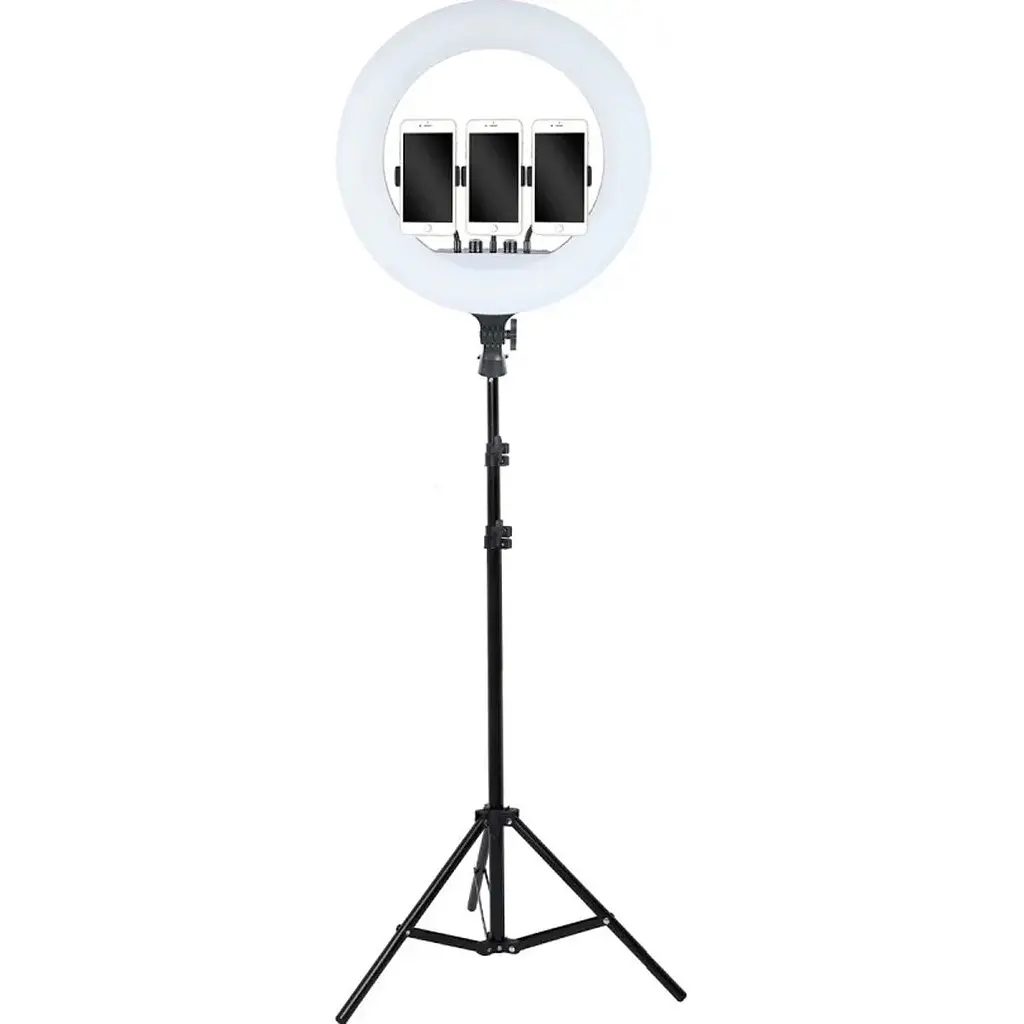 LED лампа AC Prof RL-18 - это незаменимый инструмент для создания качественного освещения во время видеосъемок, фотосессий и прямых трансляций. Эта лампа предназначена для тех, кто стремится к высокому уровню освещенности и точности передачи цветов. Благодаря диаметру 45 см, RL-18 обеспечивает равномерное распределение света, устраняя тени и делая изображение более выразительным и естественным. Высокая световая мощность и возможность регулировки яркости позволяют достигать профессиональных результатов в любых условиях съемки, независимо от того, работаете ли вы в студии или на выезде.