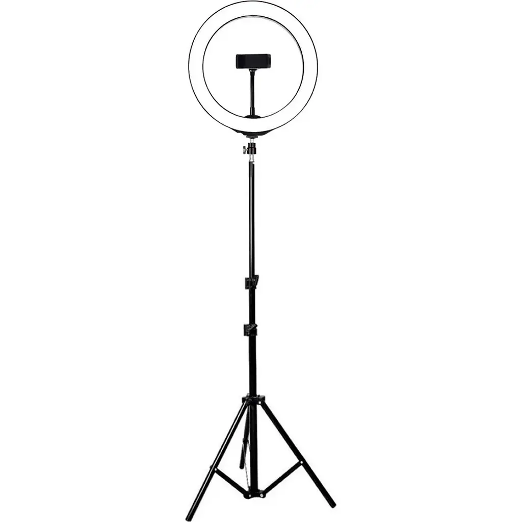 Смартфон крепится на гибкий держатель в вертикальном или горизонтальном положениях, во внутреннюю часть кольцевой лампы. Такое расположение предоставляет лучшее освещение относительно положения камеры. Второй вариант установки телефона под лампой на трубу штатива с помощью крепления краб и также в двух положениях портретном и пейзажном.