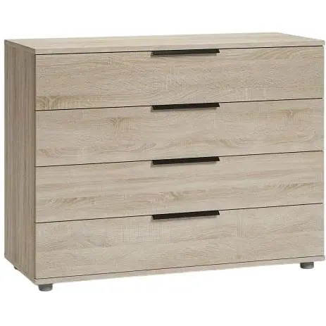 Комод Orange-Line Лира с четырьмя выдвижными ящиками обеспечивает просторное хранение в спальне или гостиной. Габариты 110x45x84 см создают значительный объем для организации одежды, документов и других бытовых предметов. Корпус и фасады изготовлены из ДСП 18 мм в декоре дуба сонома, что создает природную и уютную атмосферу в помещении. Светлый оттенок дерева универсально сочетается с разными цветовыми решениями интерьера и зрительно не уменьшает пространство. Прямая форма и лаконичный дизайн делают комод подходящим как для спальни, так и гостиной. Широкая верхняя поверхность может использоваться для размещения декоративных предметов, светильников.