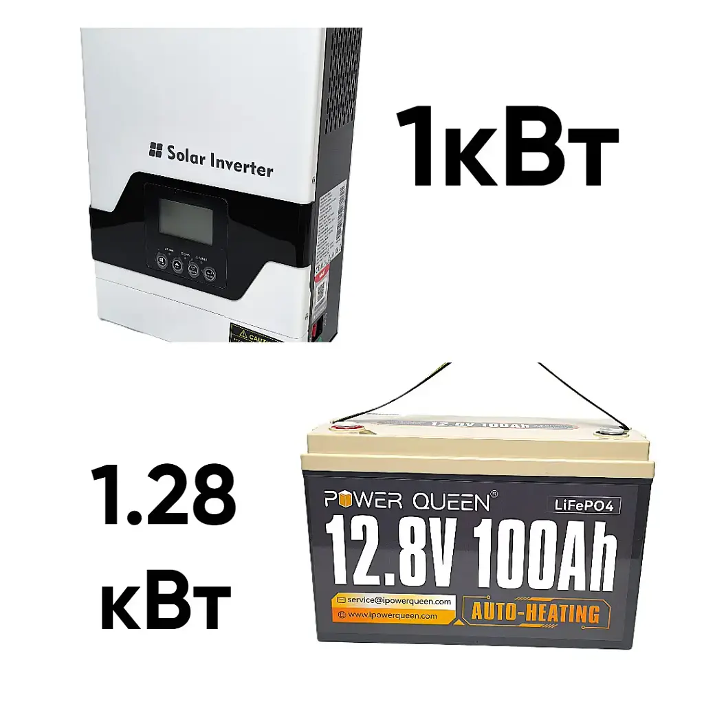 Комплект автономного питания Must PV18-1012 VPM 1000W 12V+Power Queen LiFePO4 12.8V 100Ah - готовое решение для резервного и автономного электропитания дома, офиса, дачи или кемпинга. В комплект входит гибридный инвертор мощностью 1000W с чистой синусоидой, который подходит для питания бытовой техники, освещения, роутеров и чувствительной электроники. Встроенный MPPT-контроллер обеспечивает эффективную работу с солнечными панелями и зарядку аккумулятора. Аккумулятор Power Queen LiFePO4 12.8V 100Ah отличается длительным ресурсом, стабильным напряжением, быстрой зарядкой и высоким уровнем безопасности. Такой комплект позволяет создать надежную систему резервного питания и повысить энергонезависимость при перебоях электроснабжения.