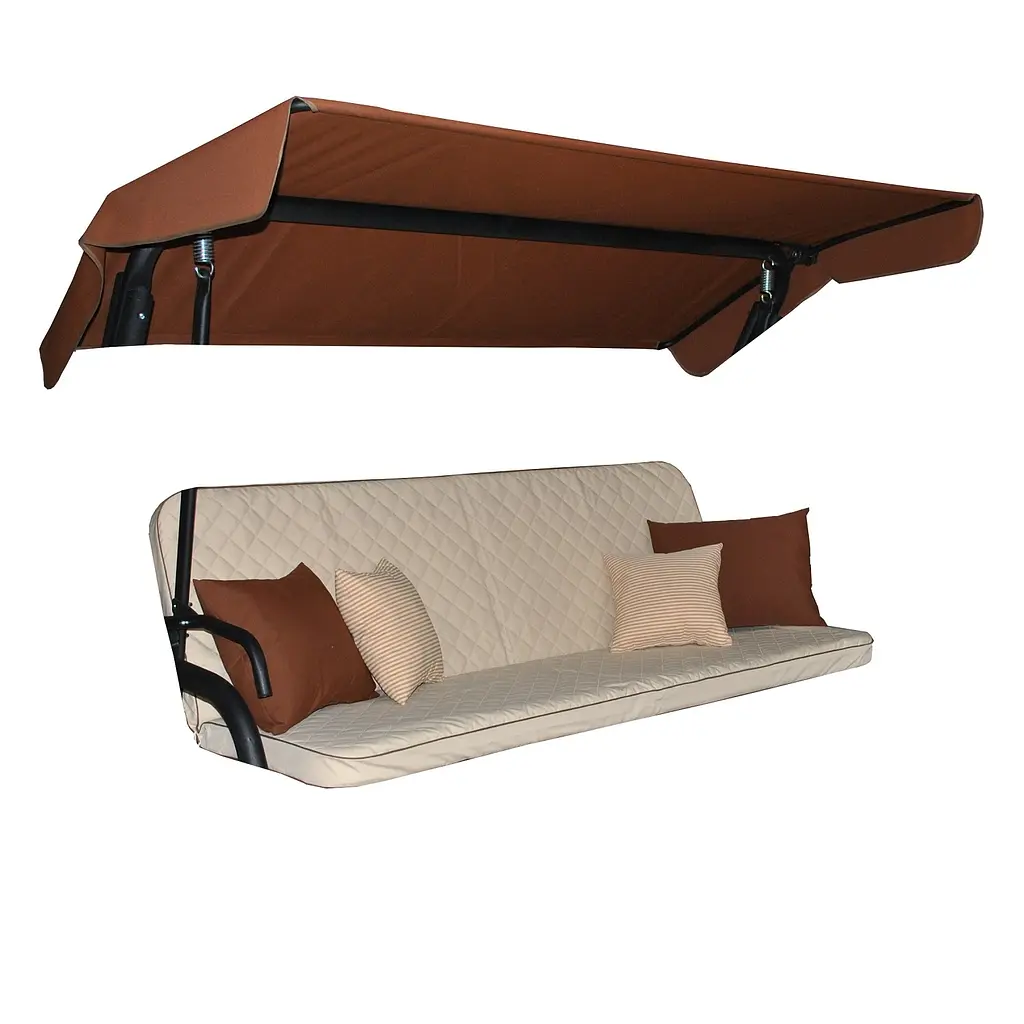 Верх матраса, крыша и подушки изготовлены из ткани тексилк (100% полипропилен), которая не выгорает на солнце, не плесневеет и защищает от UV-лучей.