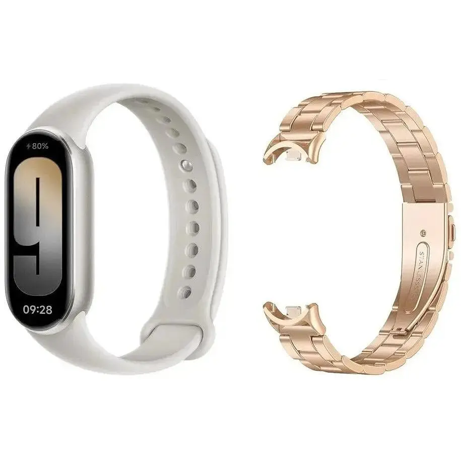 В комплект также входит металлический ремешок для фитнес браслета Xiaomi Mi Band 9 Bead design Type С Rose gold с механической застежкой и предназначен для замены оригинального ремешка.