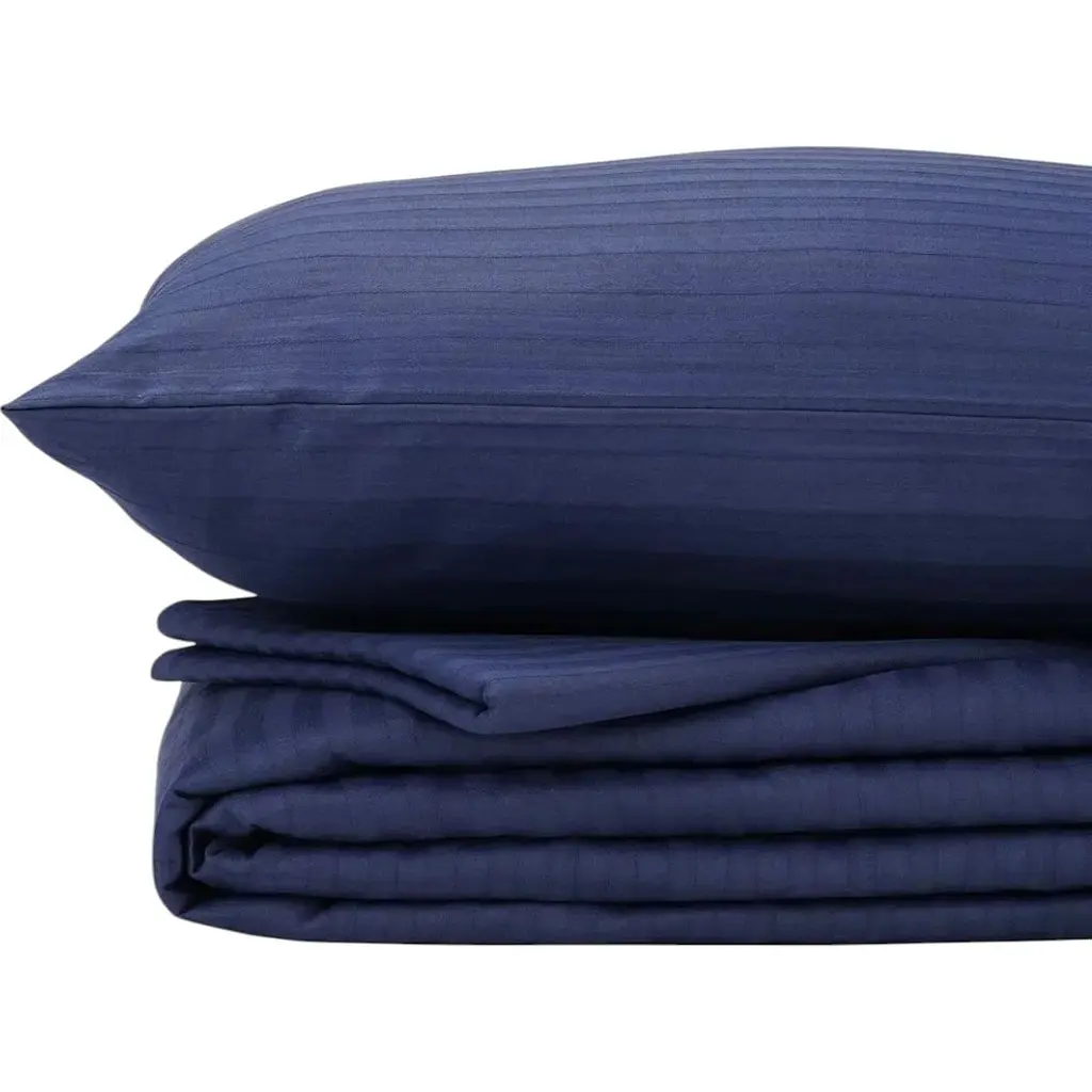 Элегантный комплект постельного белья Good-Dream страйп-сатин серии Dark Blue в любой спальне создаст ощущение тепла и уюта. Пошитое из хлопка постельное белье соответствует мировым стандартам качества и станет отличным вариантом для повседневного использования. Благодаря натуральным материалам, комплект приятен на ощупь, надолго сохраняет цвет даже при частых стирках, отлично впитывает влагу, пропускает воздух и устойчив к износу. Сатин удачно сочетает в себе нежность шелка и тепло хлопка. Материал изготавливается из витой нити двойного плетения, что придает ему гладкую, шелковистую, блестящую лицевую поверхность. Изнанка у материала слегка шершавая, так что сатиновое постельное белье не сползает во время сна. Сатин приятен к телу, мягкий, легкий, шелковистый, воздухопроницаемый, гипоаллергенный, не электризуется, практически не мнется, долговечен и не требует особого ухода. Ткань устойчива к усадке, способна выдерживать до 300 стирок, сохраняя свой начальный внешний вид.