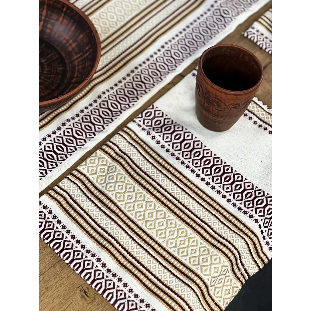 Натуральная льняная ткань приятна на ощупь, крепкая и долговечная, хорошо держит форму и подходит для многократного использования. Украинский орнамент придает изделиям аутентический вид и подчеркивает национальные традиции, делая сервировку особенно уютной и торжественной.
