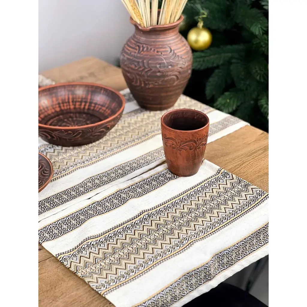 Комплект рождественский льняной с украинским орнаментом - это стильный и практичный набор для праздничной сервировки стола.