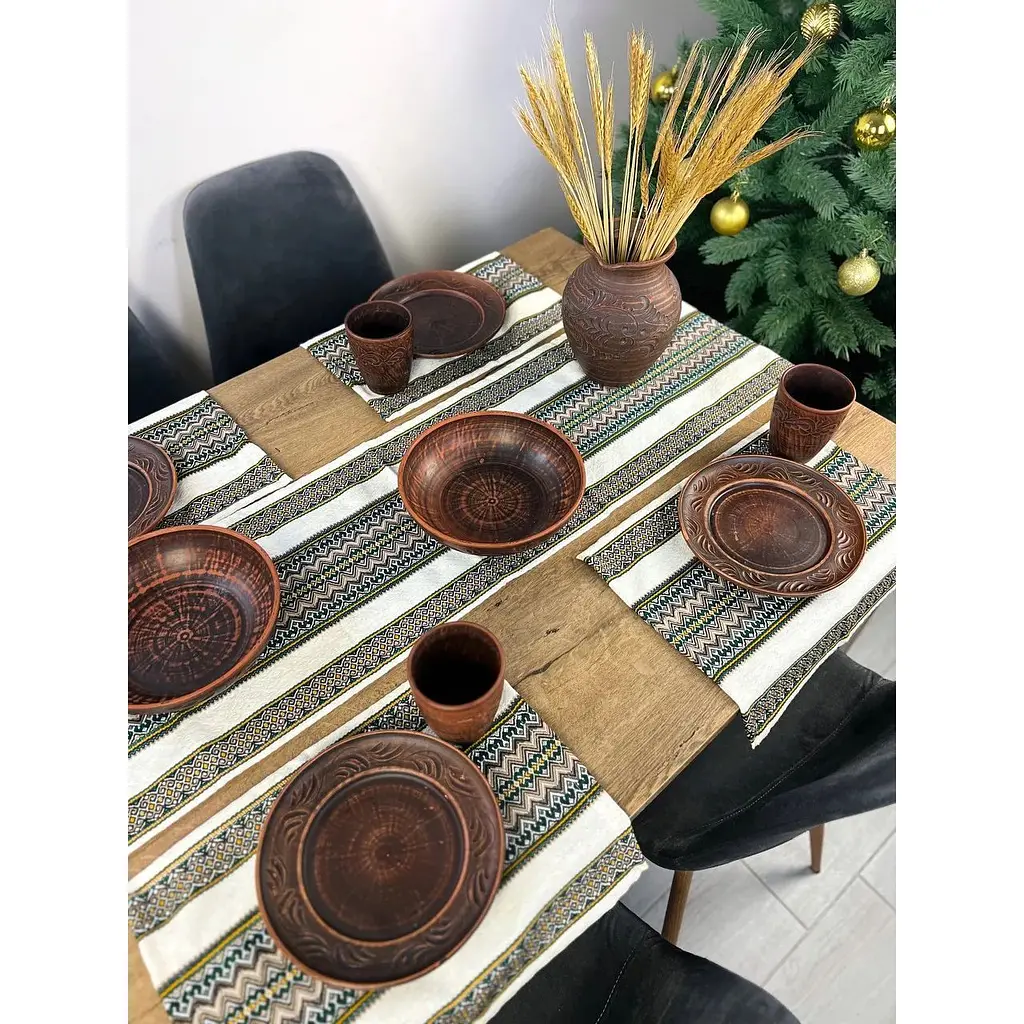 Такой комплект идеально подойдет для рождественских праздников, семейных застолий и станет хорошим подарком для любителей украинского стиля и домашнего уюта.
