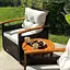 Маленький журнальный столик идеально дополнит пару кресел. Этот практичный предмет мебели позволяет удобно поставить стакан с напитком или почитать что-то во время отдыха на природе. Столешница и ножки изготовлены из промасленной древесины акации теплого оттенка, что придает мебельному гарнитуру Arde эффектный и стильный вид. Этот вид древесины также характеризуется высокой твердостью и устойчивостью к грибкам и насекомым, что обеспечивает долгий срок службы стола. Внизу стола есть дополнительная полка из техноротанга.
