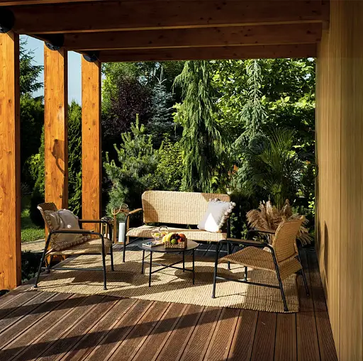 Техноротанговое плетение, из которого изготовлены сиденья и спинки мебели Corato, обладает высокой устойчивостью к механическим повреждениям и неблагоприятным погодным условиям, таким как дождь, снег, влага, УФ-лучи, высокие и низкие температуры. Благодаря этим свойствам мебель Corato сохраняет свой эстетический вид на протяжении многих лет использования. Дополнительным преимуществом мебели из техноротанга является то, что она не требует сезонного ухода и особых процедур по уходу.