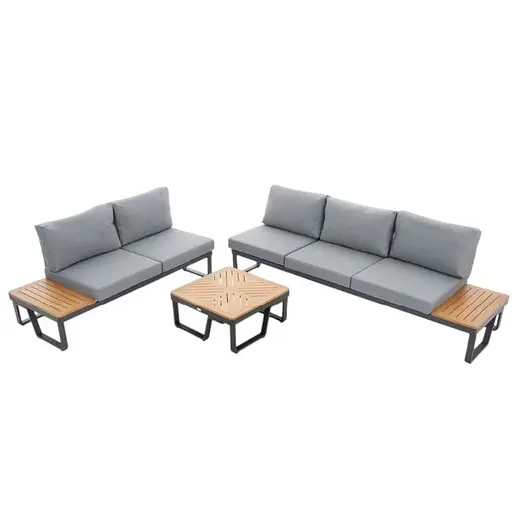 Представьте себе уютный вечер на террасе или в саду, где вы в комфорте наслаждаетесь чашечкой ароматного кофе, беседами с близкими или просто тишиной природы. Садовый комплект мебели Veledo - это идеальное сочетание эстетики, долговечности и удобства, которое станет сердцем вашего отдыха на свежем воздухе. Он создан для тех, кто ценит стильную мебель, которая дарит максимум комфорта и функциональности. 5-местный угловой диван с модульной конструкцией, стильный журнальный столик и мягкие подушки из пропитанной ткани делают комплект Veledo незаменимым элементом вашего пространства. Каркас из прочного алюминия с порошковым покрытием гарантирует устойчивость к погодным условиям, а натуральная радиальная сосна добавляет гарнитуру естественной теплоты и легкости. Чтобы сделать ваши вечера еще более уютными, в комплект входит теплое серое одеяло, которое окутает вас комфортом в прохладную погоду. Veledo от Di Volio - это не просто садовая мебель, это возможность создать идеальное место для отдыха, где стиль и удобство сочетаются в совершенном балансе.