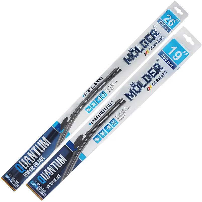 Комплект щеток стеклоочистителей гибридных Molder Quantum для Volkswagen Passat з 2014 состоит из:
