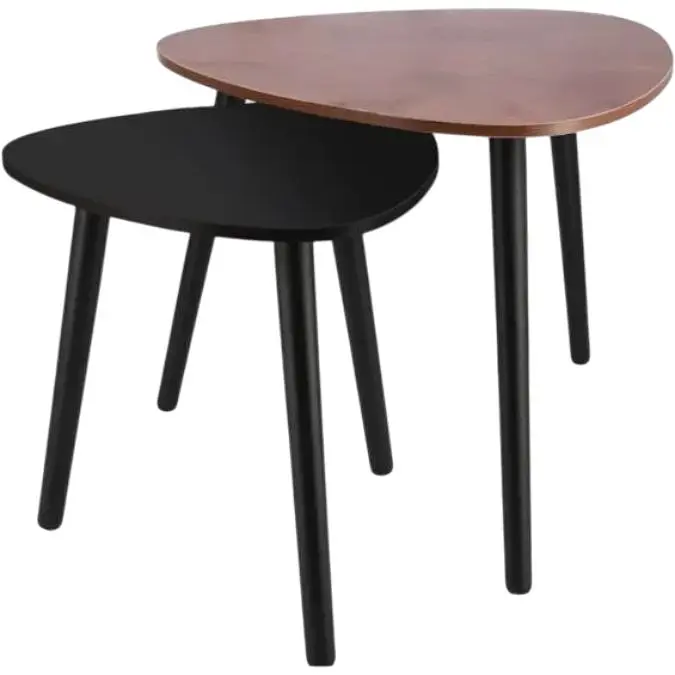 Комплект журнальных столиков Jumi Sinsey - это элегантное сочетание современного дизайна и естественной эстетики. Их уникальный треугольный силуэт выделяется среди классических форм и придает пространству легкость. Такой дизайн идеально подходит для скандинавских, минималистичных или модерновых интерьеров. Коричневая столешница с теплым оттенком создает уютную атмосферу, а черные деревянные ножки добавляют глубины и стиля. Благодаря этому контрасту стулья не только функциональны, но и декоративно привлекательны, легко становятся акцентным элементом в гостиной, спальне или офисе.