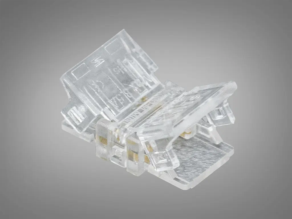 Коннектор для LED ленты 8 мм, пробивной контакт (SMD/COB). Универсальный коннектор для светодиодных лент шириной 8 мм с пробивным механизмом контактов разработан для надежного, быстрого и без паяльного соединения одноцветных SMD и COB LED лент. Его полупрозрачный корпус позволяет зрительно контролировать качество соединения и делает процесс монтажа максимально удобным.