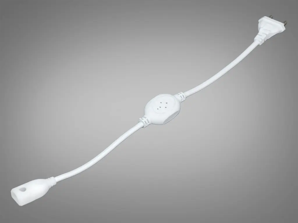 Двухконтактный коннектор для LED ленты 220V, 12 мм, длина 350 мм. Универсальный и безопасный двухконтактный коннектор для ленты LED шириной 12 мм на 220V предназначен для прямого подключения к сети переменного тока. Встроенный выпрямитель с силовым кабелем длиной 350 мм позволяет подсоединить ленту к бытовой розетке без дополнительных блоков питания или контроллеров.