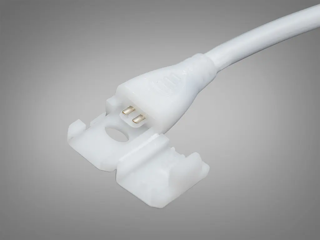 Односторонний коннектор для LED ленты 220V 3535, 2-pin, длина 200 мм. Надежный односторонний двухконтактный коннектор для светодиодной ленты 220V типа 3535 предназначен для безопасного и удобного подключения к сети переменного тока без пайки. Оснащенный встроенным кабелем длиной 200 мм, он идеально подходит для стандартных линейных подсветок и наружного использования в сочетании с соответствующими блоками герметизации.