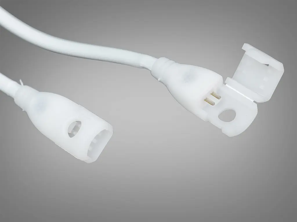 Двухконтактный коннектор для LED ленты 220V, 8 мм, длина 350 мм. Надежный и удобный в использовании двухконтактный коннектор для ленты LED шириной 8 мм, предназначенный для питания светодиодной ленты от сети 220V. Встроенный сетевой кабель длиной 350 мм с евровилкой позволяет быстро подсоединить ленту без пайки или дополнительных блоков питания.