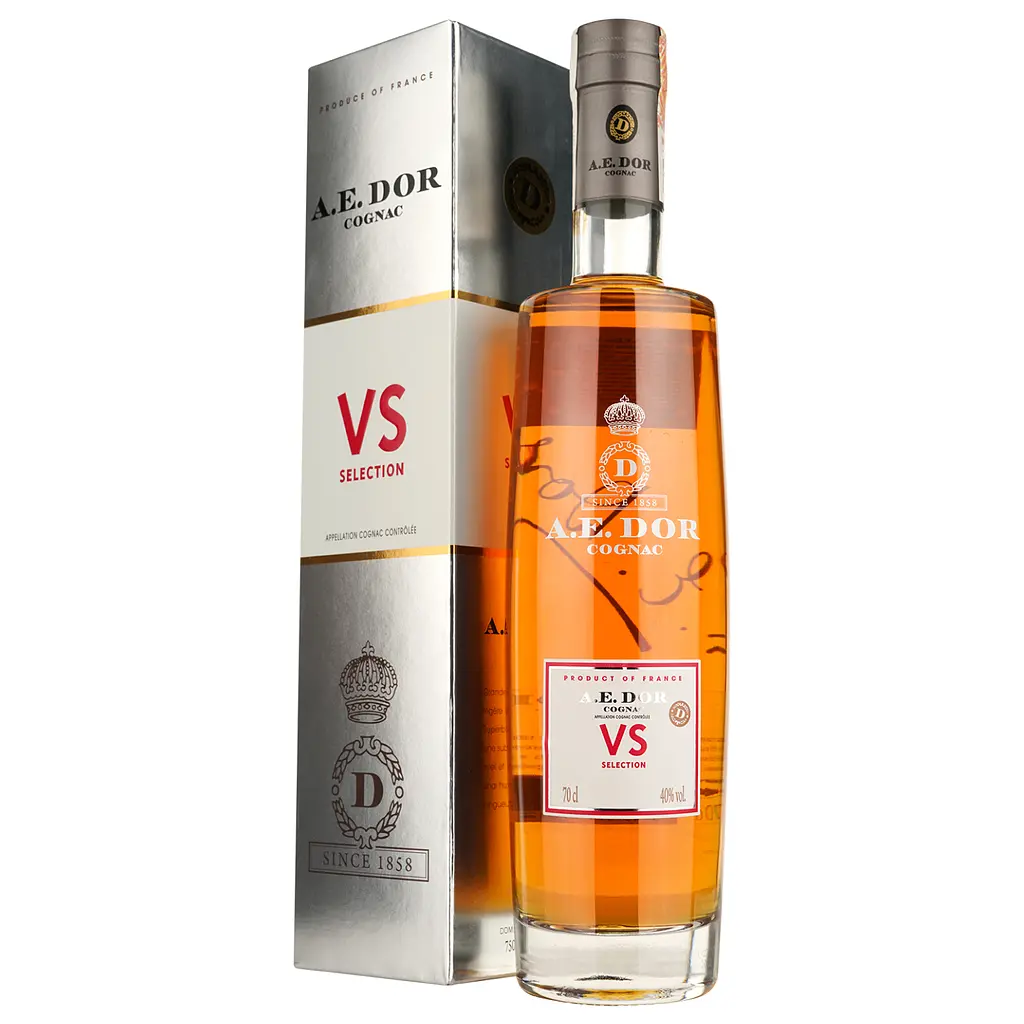 Особенности: A.E. Dor VS создан из спиртов, полученных из регионов Бордери и Фин Буа, что придает ему утонченный, цветочно-фруктовый аромат. Этот коньяк выдержан в дубовых бочках не менее трех лет.