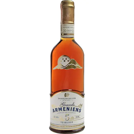 Коньяк Grands Armeniens 5 years old изготовлен из коньячных спиртов, которые выдерживаются по классической французской технологии в бочках не менее пяти лет. Благородный напиток в бутылке из светлого стекла демонстрирует оттенок золотого янтаря и многогранный живой букет, в котором гармонично переплетаются ноты ванили, дубовой древесины и лесного ореха. Коньяк буквально впитал в себя жаркое солнце долины Арарат, а тонкое и долгое послевкусие по достоинству оценят гурманы и знатоки.