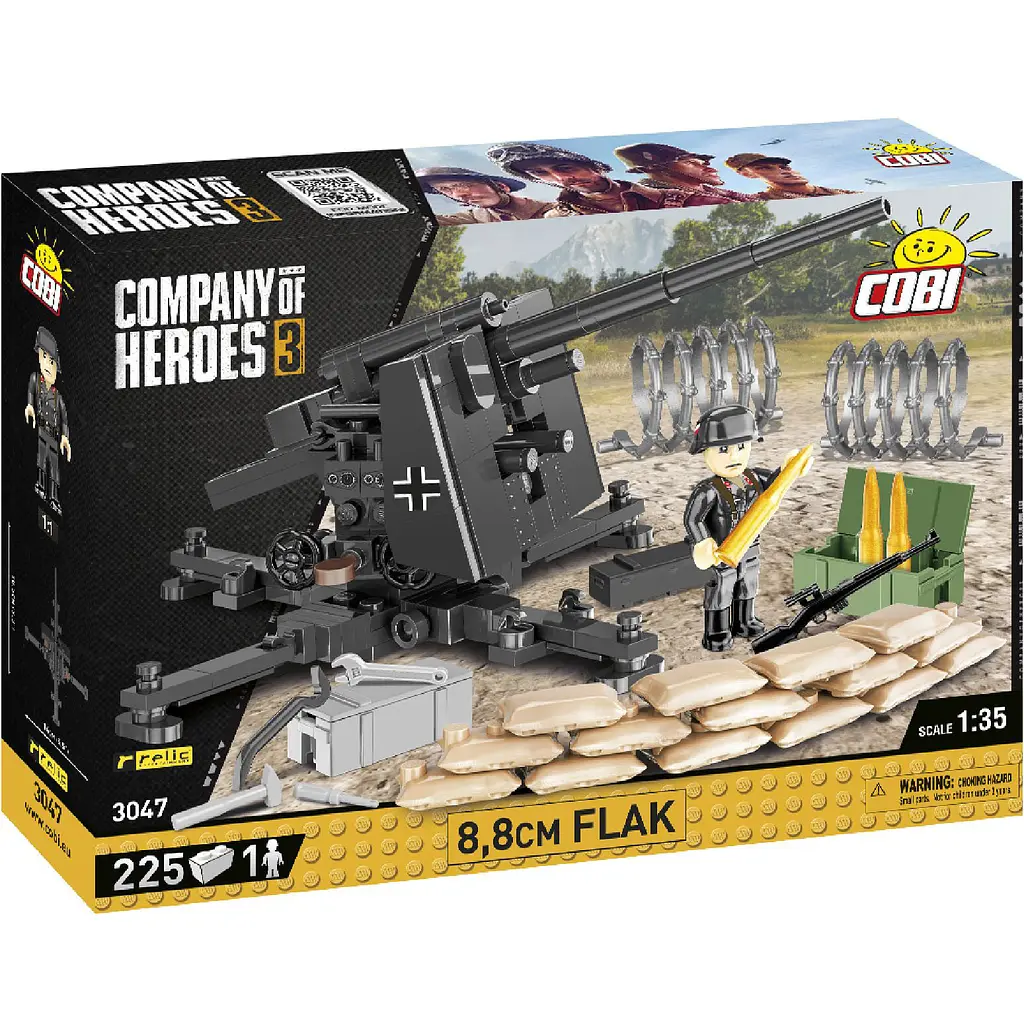 Конструктор Cobi разработан по лицензии Relic Entertainment, студии, создавшей нашумевшую стратегическую игру Company of Heroes 3, действие которой разворачивается в реалиях Второй мировой войны. Перенесите атмосферу игры в реальный мир с помощью лицензированных наборов строительных блоков Cobi. 88 mm Flak - немецкая зенитная пушка времен Второй мировой войны, успешно уничтожающая и наземные цели. Это был один из самых эффективных видов германского оружия времен Второй мировой войны. В Company of Heroes 3 это террор союзных танков. Соревнуйтесь с Шерманами или Черчиллями из нашей коллекции. Пушка в масштабе 1:35 состоит из 225 частей.