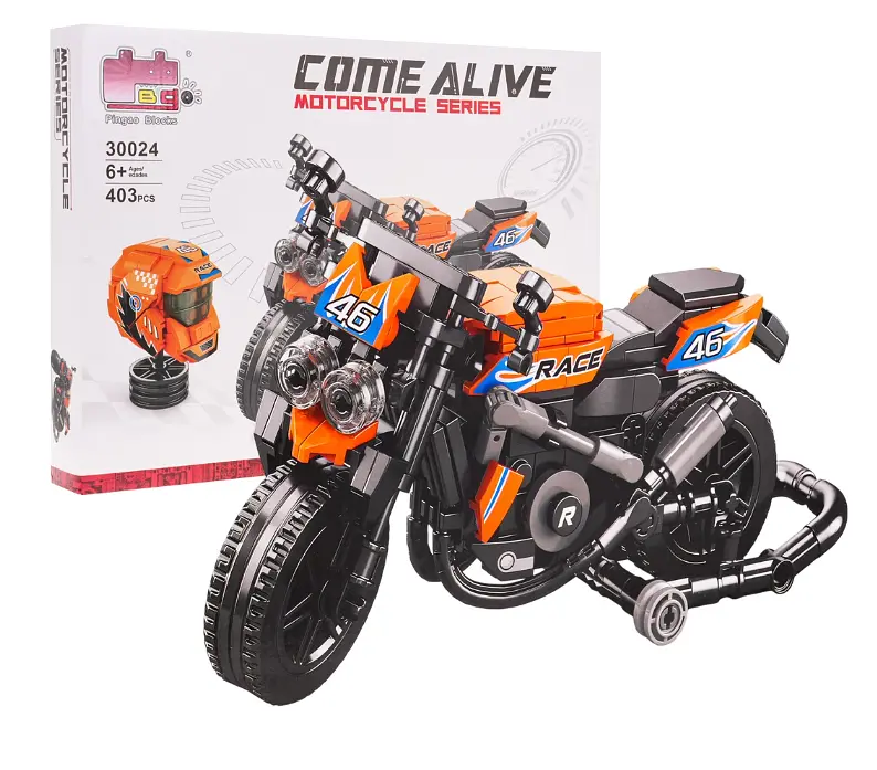 Почувствуйте драйв и эстетику современного байка с этим ярким набором для конструирования! Модель из 403 элементов позволяет собрать реалистичный спортивный мотоцикл в сочном оранжевом цвете. Это идеальный выбор для юных инженеров и любителей скорости, который сочетает в себе увлекательную сборку и продуманный функционал.