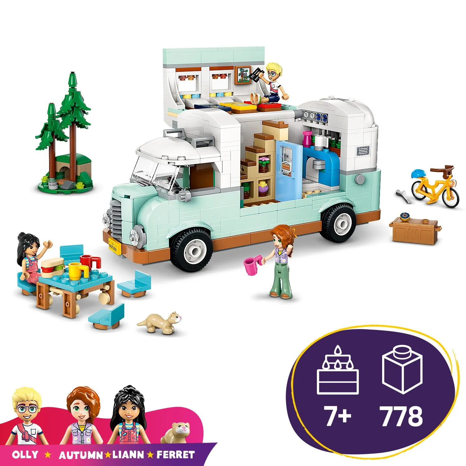 В этом многофункциональном игровом наборе с фургоном есть все, что нужно юным исследователям для создания веселых историй о кемпинге.