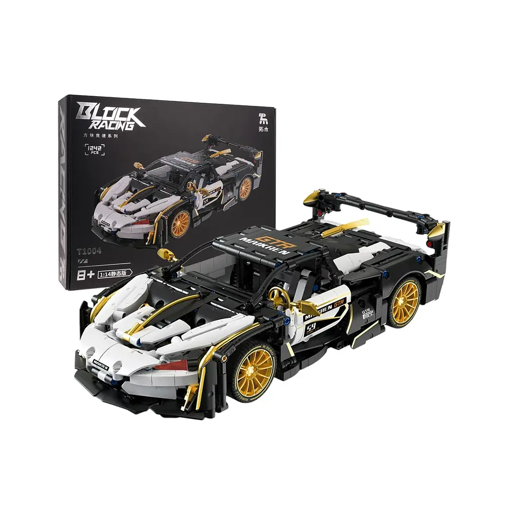 Набор из 1242 конструкторов для самостоятельной сборки черно-белого спортивного автомобиля. Модель выполнена в масштабе 1:14. Игрушка предназначена для детей от 8 лет. Блоки и элементы автомобиля изготовлены из высококачественного ABS пластика. Автомобиль имеет реалистичные имитации золотых элементов с металлическим блеском, например дисков. В набор входит графическая инструкция. Сборка конструкторов развивает у детей ручное мастерство, пространственное воображение и терпение.