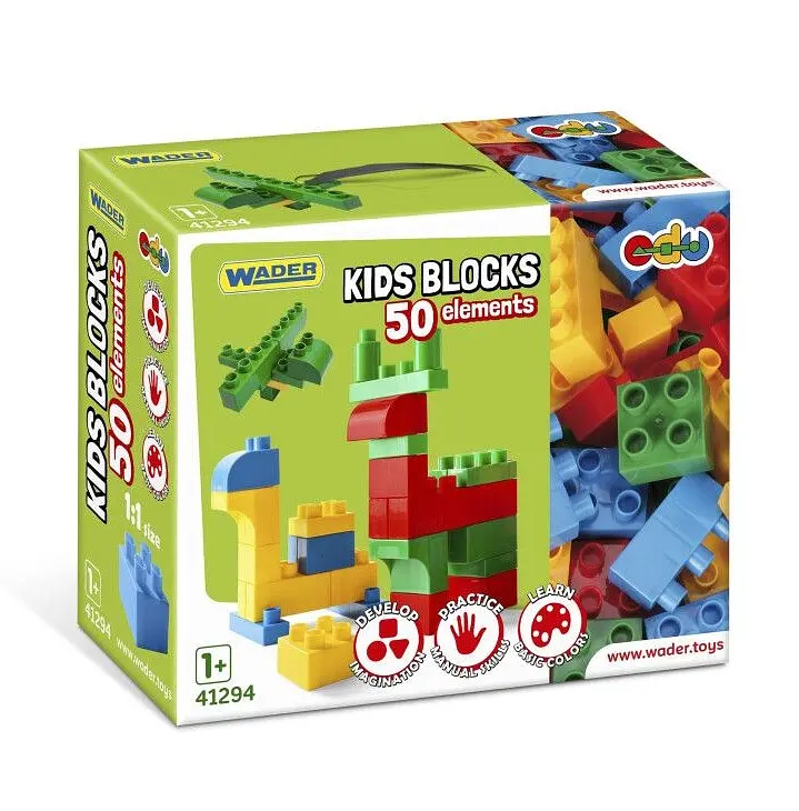 Конструктор Wader (Вадер) Kids Blocks набор элементов различных форм и цветов из которых можно складывать различные конструкции.