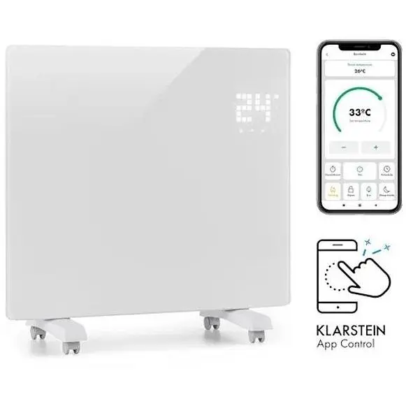 Элегантность пробуждает уют и комфортную температуру в вашем доме: конвекционный обогреватель Klarstein Bornholm Single Smart обеспечивает равномерный нагрев до максимум 45 °C в помещениях площадью до 20 м². Обогреватель Klarstein мощностью 1000 Вт нагревается на двух уровнях нагрева вашего помещения быстро и надежно, благодаря чему вы можете постоянно контролировать желаемую температуру с помощью термостата. Режим ECO снижает потребление энергии до минимума: это защищает окружающую среду и кошелек. Благодаря защите от брызг воды отопитель также идеально подходит для влажных помещений, а благодаря функции таймера вы можете запрограммировать его с точностью до минуты. Сенсорная панель управления и пульт дистанционного управления также позволяют использовать его очень удобно, а благодаря напольным колесикам вы можете перемещать устройство из комнаты в комнату.