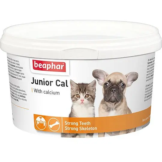 Кормовые добавки Junior Cal для растущих щенков и котят, а также беременных и кормящих животных. Добавка укрепляет кости и зубы, способствует оздоровлению шерсти. Высококачественные минералы в составе кормовой добавки богаты фосфорнокислым и молочнокислым мелом. Кальций необходим для структурной целостности костей, сокращения всех мышц, в том числе сердца, передачи нервных импульсов, свертывания крови, здоровья клеточных мембран и транспорта питательных веществ через них. Фосфор входит в состав костей и клеток нервной, мышечной и железистой ткани и играет важную роль в механизмах жизнедеятельности. Магний поддерживает здоровье всех тканей тела, функционирование ферментной системы обмена углеводов, жиров и белков, метаболизм кальция, фосфора, натрия и калия, а также витамина С.