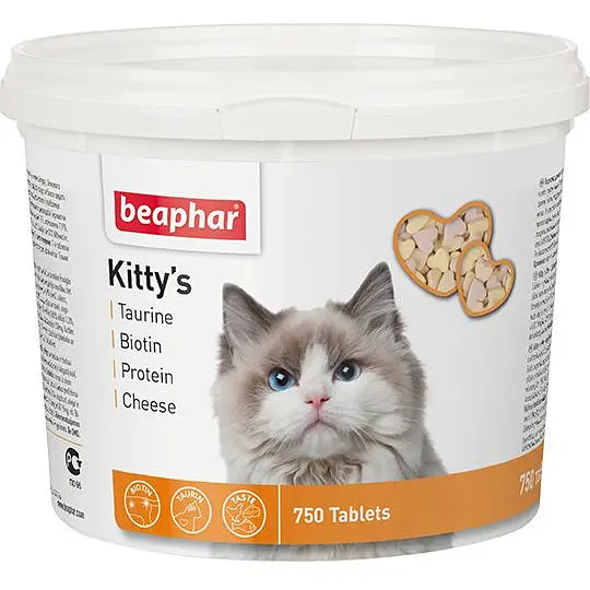 Кормовая добавка Kitty's Mix для кошек — комплекс витаминов в виде лакомства с широким выбором вкусов и полезных добавок для кошек. В одной упаковке собраны различные виды таблеток: белые с таурином и биотином (со вкусом йогурта), розовые с белками (со вкусом рыбы) и желтые (с сыром), красные (красные). Таурин способствует работе сердца, желчного пузыря, мозга и глаз кошки, биотин обеспечивает здоровье кожи и шерсти; белки способствуют хорошему здоровью вашего кота, а творог и рыба придают разнообразие его ежедневному меню.