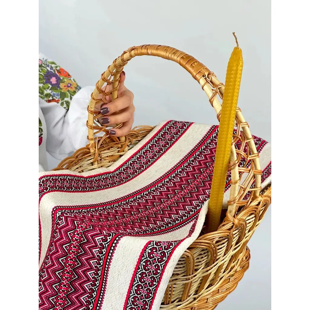 Комплект Пасхальная корзина Галичина - праздничный набор для освящения и оформления пасхальных продуктов, создающий теплую атмосферу Пасхи Стильная и экологичная Пасхальная корзина из лозы станет идеальным дополнением к вашему празднованию. Его классический дизайн, натуральные материалы и прочность позволяют удобно разместить кулич, писанки и другие вкусности. Ручная работа обеспечивает уникальность каждого изделия, а естественный оттенок лозы придает теплу и подлинности. Особенности: