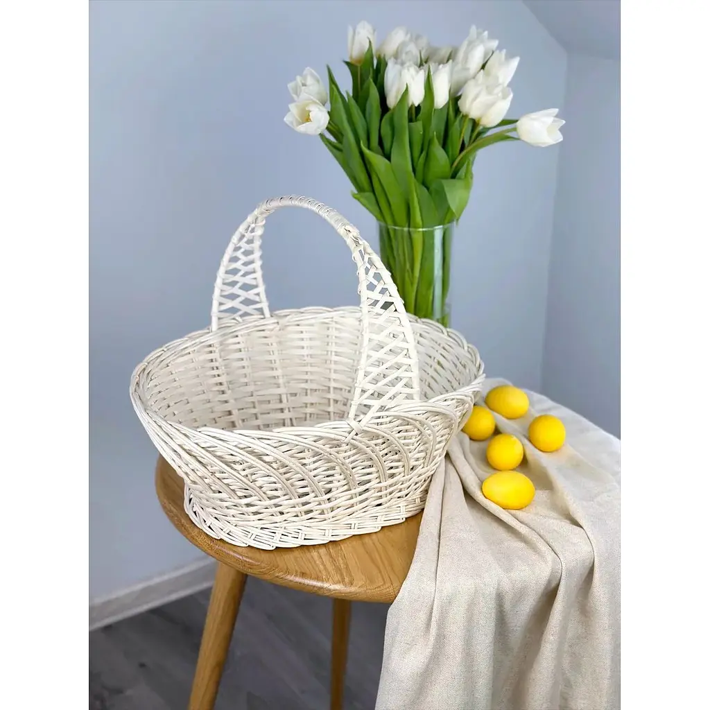 Стильная и экологичная Пасхальная корзина из лозы станет идеальным дополнением к вашему празднованию. Его классический дизайн, натуральные материалы и прочность позволяют удобно разместить кулич, писанки и другие вкусности. Ручная работа обеспечивает уникальность каждого изделия, а естественный оттенок лозы придает теплу и подлинности.