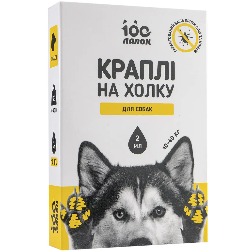 Капли для собак 100 Лапок предназначены для собак при поражении эктопаразитом: блохами, волосоидами, клещами (паразитоформными, тромбидоформными и чесотчатыми) на всех стадиях развития. Капли собираются в фолликулах шерстяного покрова и, постепенно высвобождаясь, убивают паразитов.