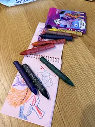 Дуже гарні олівчики, мякі, гарно тушуються, яскраві, кольорів вісім, але для дитячих розмальовок цього достатньо! Дитині три роки легко тримати в руці! Гарно загорнуте місце, де тримати рукою, тому що попередні швидко розгорнулись і були брудні руки при використанні. І я і дитина з задоволенням малюємо ними, тому рекомендуємо 👌 ціна МауДау найкраща!