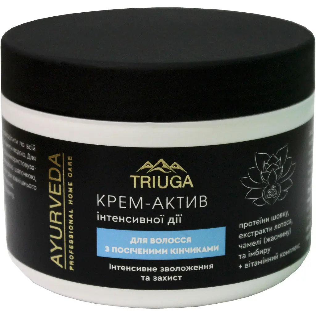 Крем-актив для волос Triuga Ayurveda Интенсивное увлажнение и защита - косметическое средство, рекомендуемое для восстановительной терапии во время пляжного отдыха, в период отопительного сезона, а также после воздействия соленой и хлорированной воды.
